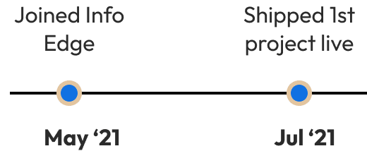 I joined Zomato in November 2024 and currently work as a Senior Product Designer on the Consumer team, where I’ve led highly impactful projects influencing core user journeys and business outcomes. Prior to Zomato, I spent over three years at 99acres (Info Edge India), working on revenue-shaping initiatives and large-scale UX improvements. An IIT Guwahati ’21 graduate focused on intuitive design and end-to-end execution. Outside work, I explore videography and creative pursuits. Let’s connect.